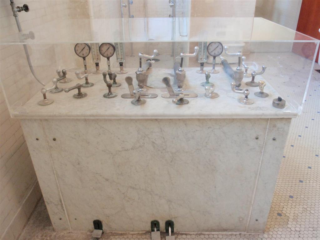 No need for texting when your pals are boxed right next to you for a chat. More seating for attendants while you and your friends while away your troubles. This was part of the Hydro-Therapeutic Room, which the Fordyce booklet described as "A feature of great scientific interest,...its equipment [includes] sun-ray cabinets, frigid cabinets, devices for sprays, douches, Sitz baths, electric baths and the like."